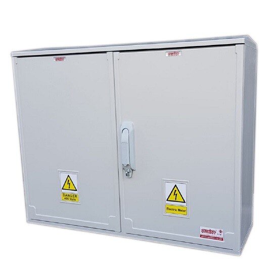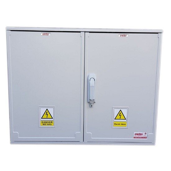 This large, strong surface-mounted Electricity Meter Box is made from thick, insulating, fire-resistant, and self-extinguishing composite GRP (Glass Reinforced Plastic).