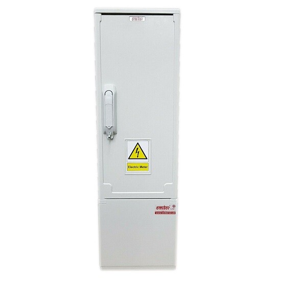 This large, strong surface-mounted Electricity Meter Box is made from thick, insulating, fire-resistant, and self-extinguishing composite GRP (Glass Reinforced Plastic).