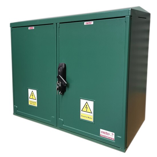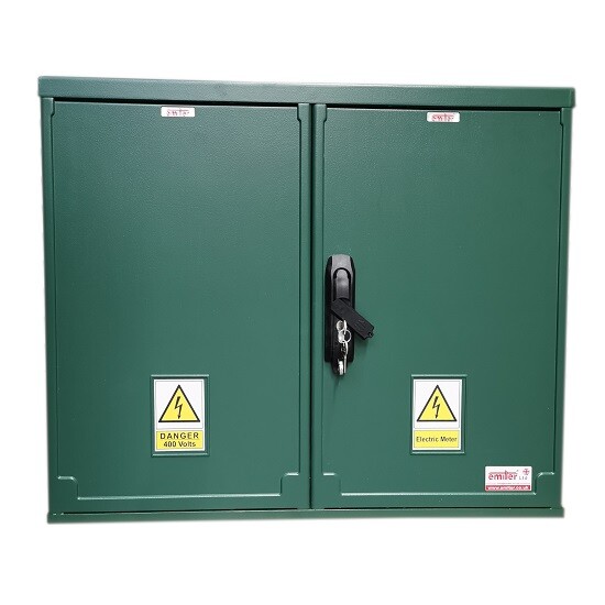 This large, strong surface-mounted Electricity Meter Box is made from thick, insulating, fire-resistant, and self-extinguishing composite GRP (Glass Reinforced Plastic).