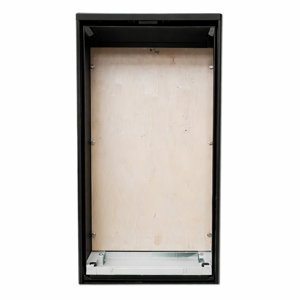 • Mounting plate in back of box – 18mm WBP Plywood size: Width: 595mm, Height: 1000mm