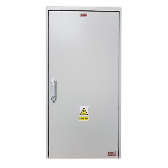 This large, strong surface-mounted 3 Phase Electricity Meter Box is made from thick, insulating, fire-resistant, and self-extinguishing composite GRP (Glass Reinforced Plastic).