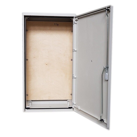 • Mounting plate in back of box – 18mm WBP Plywood size: Width: 595mm, Height: 1000mm
